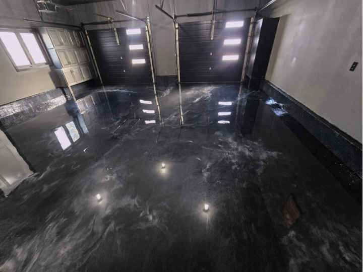High‑gloss, one‑of‑a‑kind floors ideal for garages, showrooms, lobbies, or finished basements.